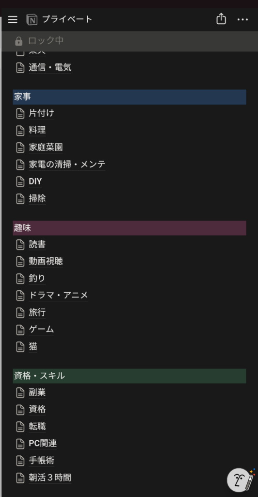 Google Keepで書いたメモのうち残したいものをNotionの項目ごとに用意されたページに入れて保存します。